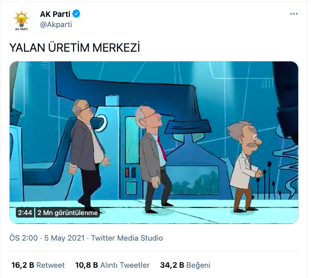 AKP, Twitter hesabı üzerinden 'Yarın saat 14.00'te' uyarısıyla duyurduğu animasyon film, sosyal medyada büyük tepkiyle karşılandı.